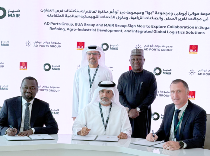 BUA Group, AD Ports Group, and MAIR Group have signed a strategic Memorandum of Understanding (MoU) to explore collaboration in sugar refining, agro-industrial development, and integrated global logistics solutions.