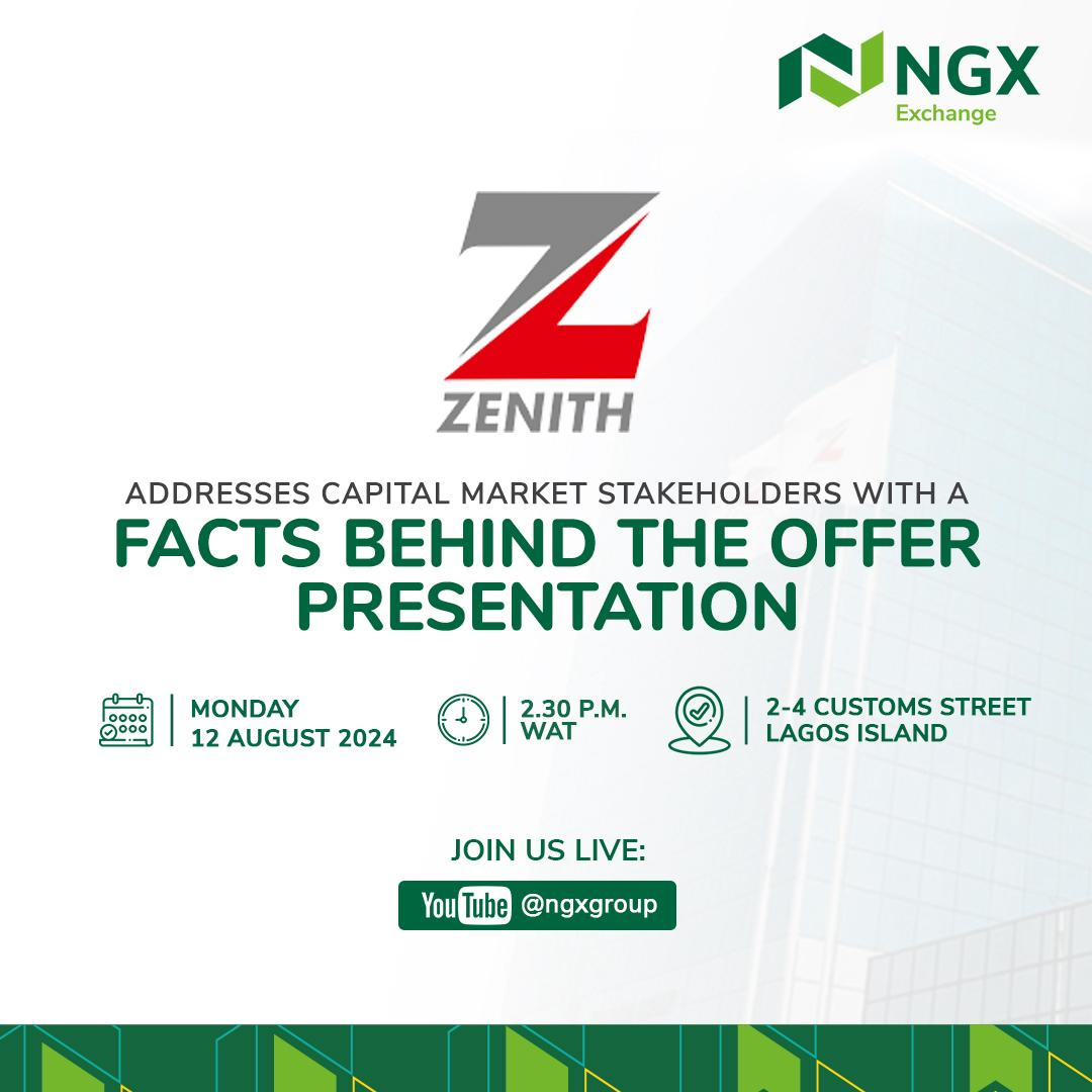 Nigerian Exchange Limited (NGX) has announced the presentation of Facts Behind the Combined Offer (Public Offer and Rights) by the board and management of Zenith Bank Plc.